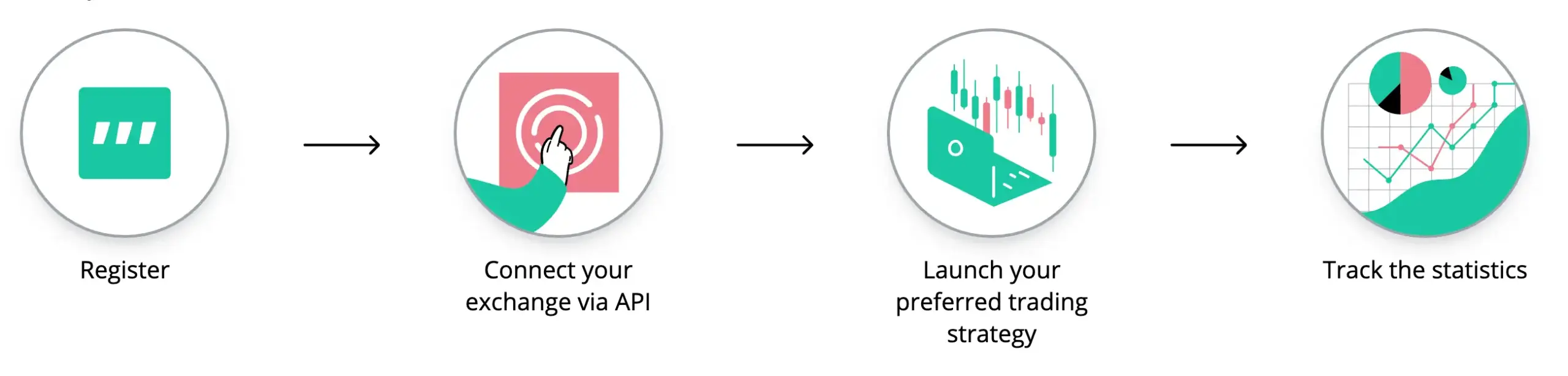 Der Workflow basiert auf einer API-Schnittstelle zwischen deinem Exchange-Account und 3Commas. Die Plattform erhält dadurch Zugriff auf dein Handelskonto, kann aber kein Geld abheben.