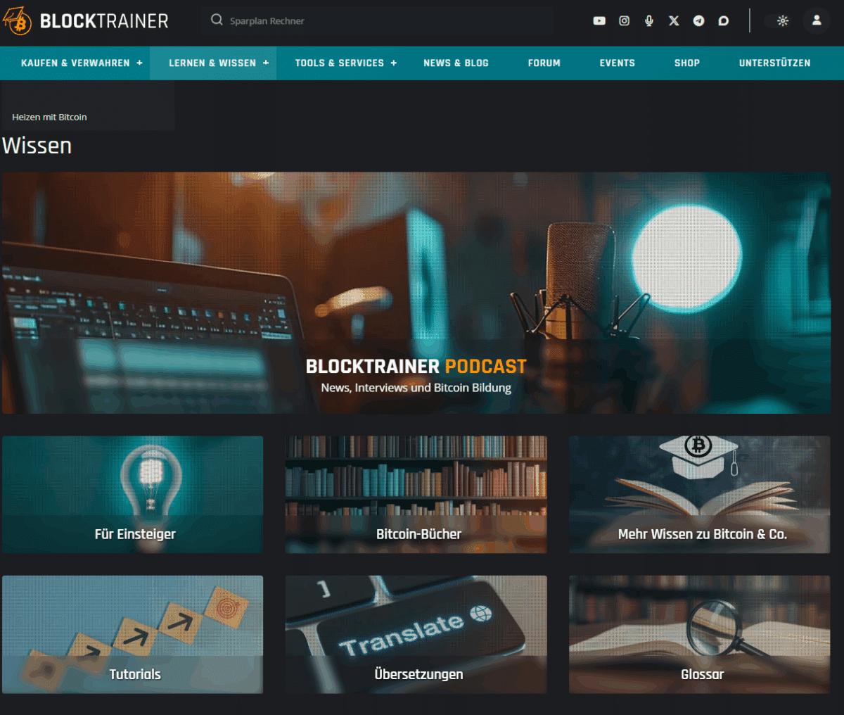 Der Bereich Lernen & Wissen ist das Herzstück der Blocktrainer-Website und richtet sich an alle, die Bitcoin wirklich verstehen wollen. Hier findest du unter anderem: