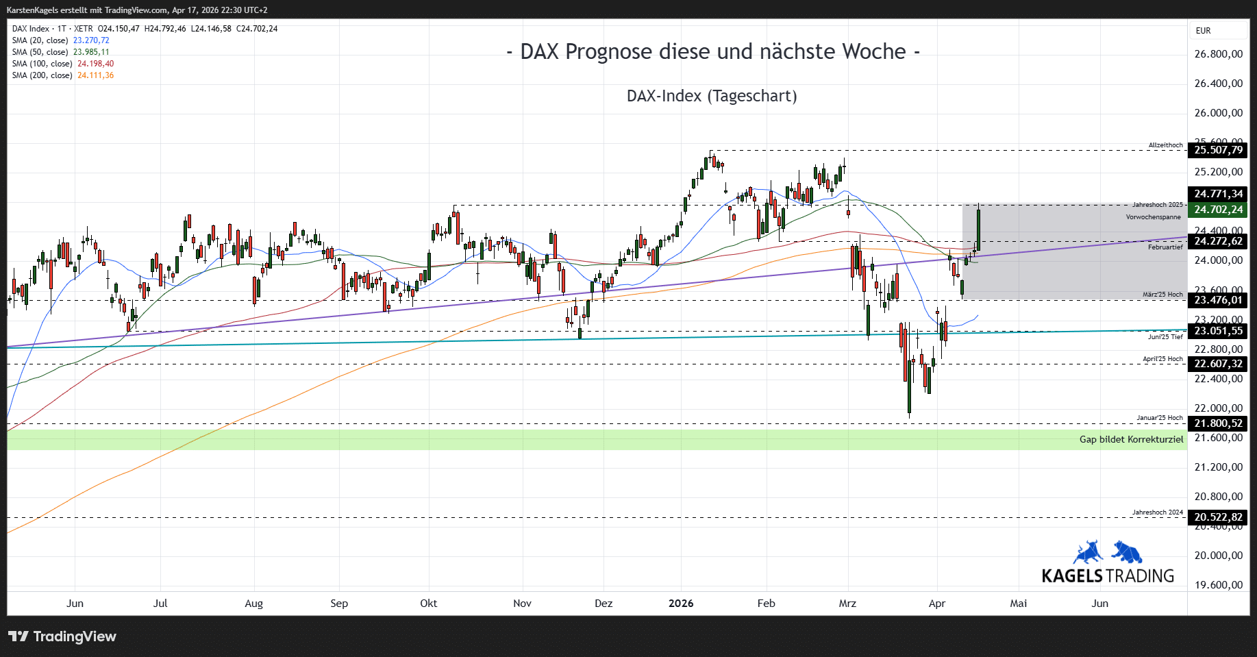 DAX Prognose auf einen Blick (Stand: 18.04.2026, 24.698 Punkte)