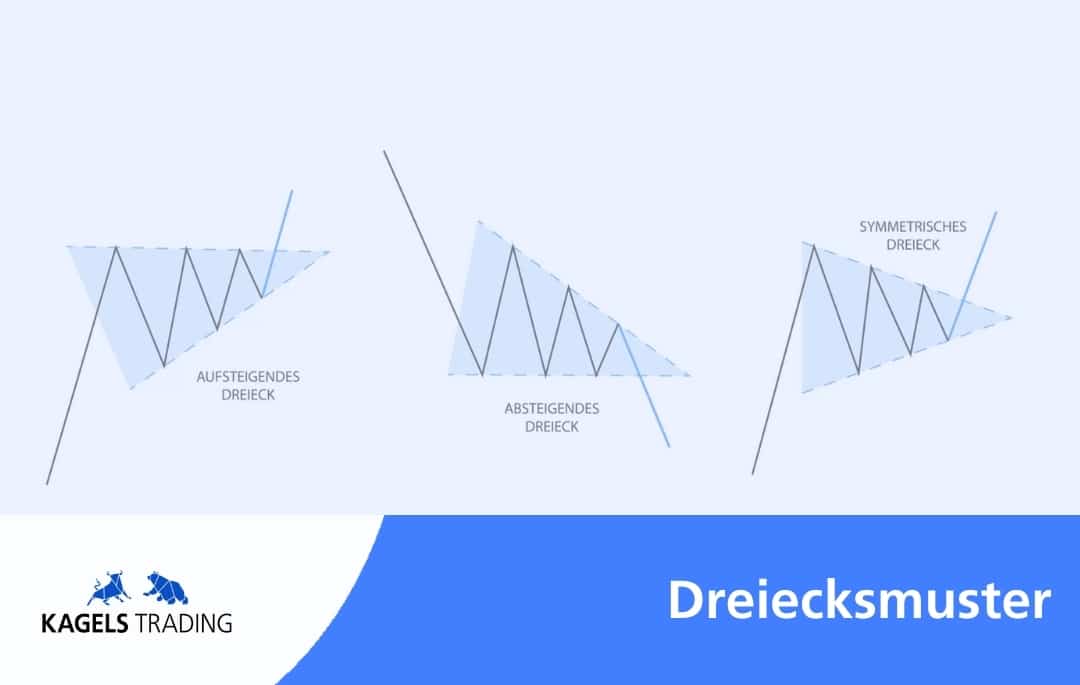 • Dreiecke ähneln anderen Chartmustern wie Keilen (Wedges) und Wimpeln (Pennants) und können je nach Situation eine Fortsetzung oder Umkehr signalisieren.