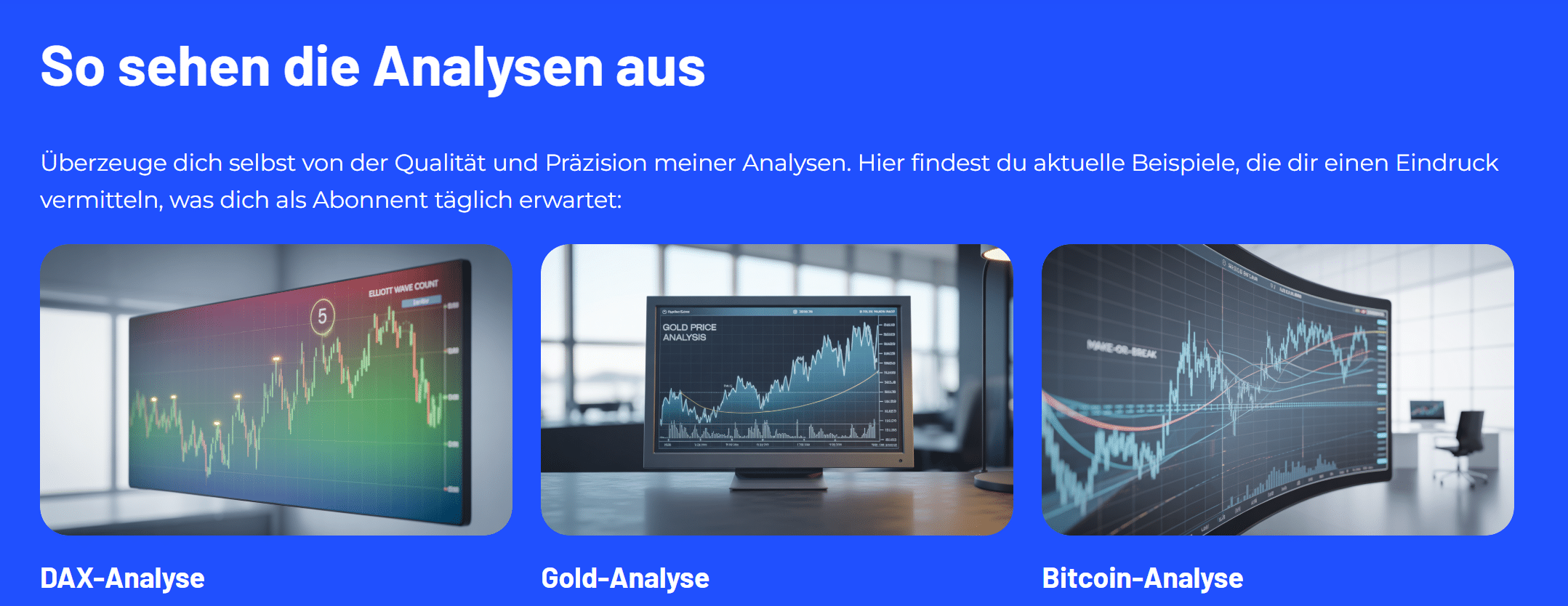 Die Plattform bietet tägliche Marktanalysen, einen laufenden Livestream mit strukturierten Marktkommentaren sowie verschiedene Mitgliedschaftsmodelle für ausgewählte Indizes, Rohstoffe und Kryptowährungen. Ziel ist es, Marktbewegungen anhand einer klar definierten Wellenstruktur einzuordnen und daraus konkrete Szenarien mit nachvollziehbaren Kursmarken abzuleiten.