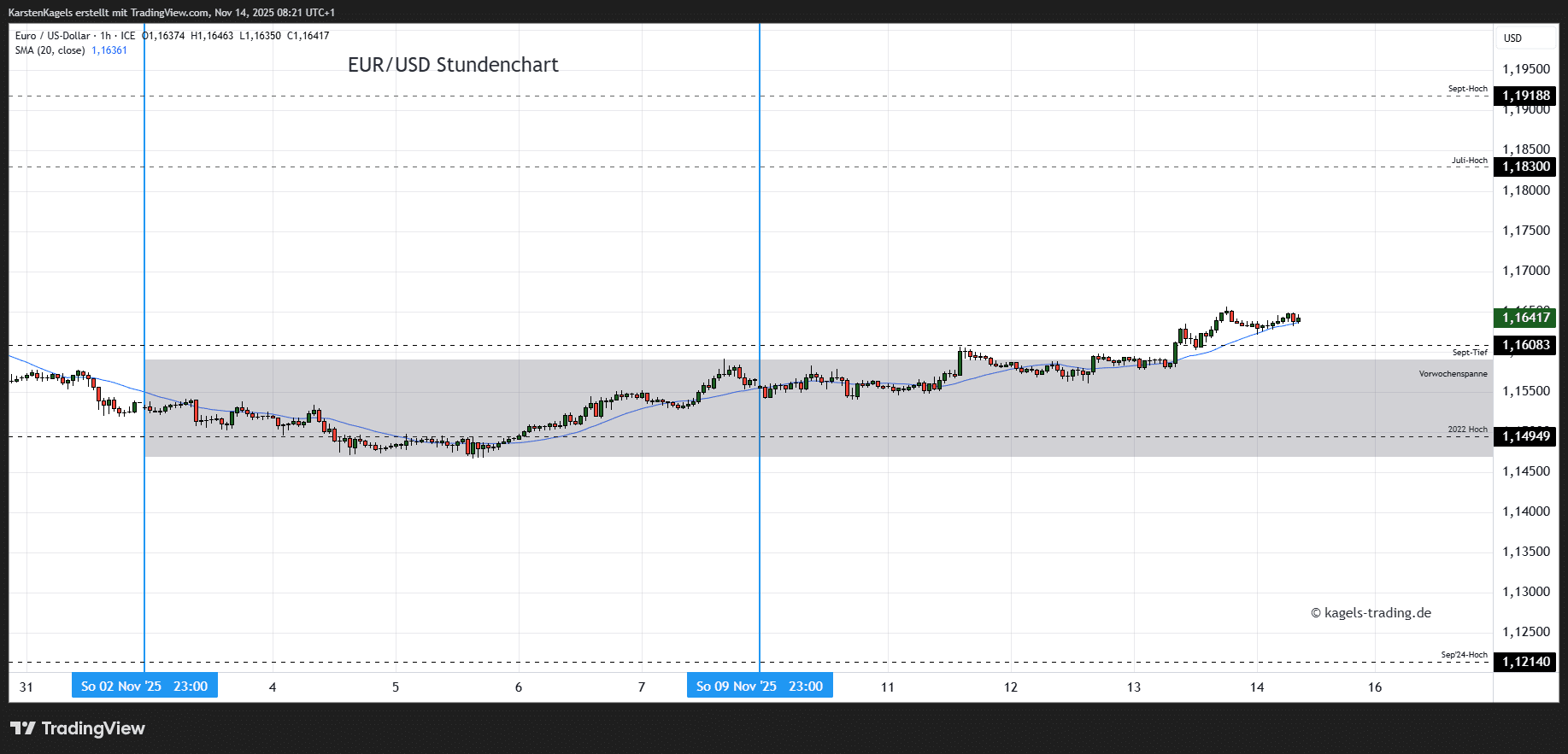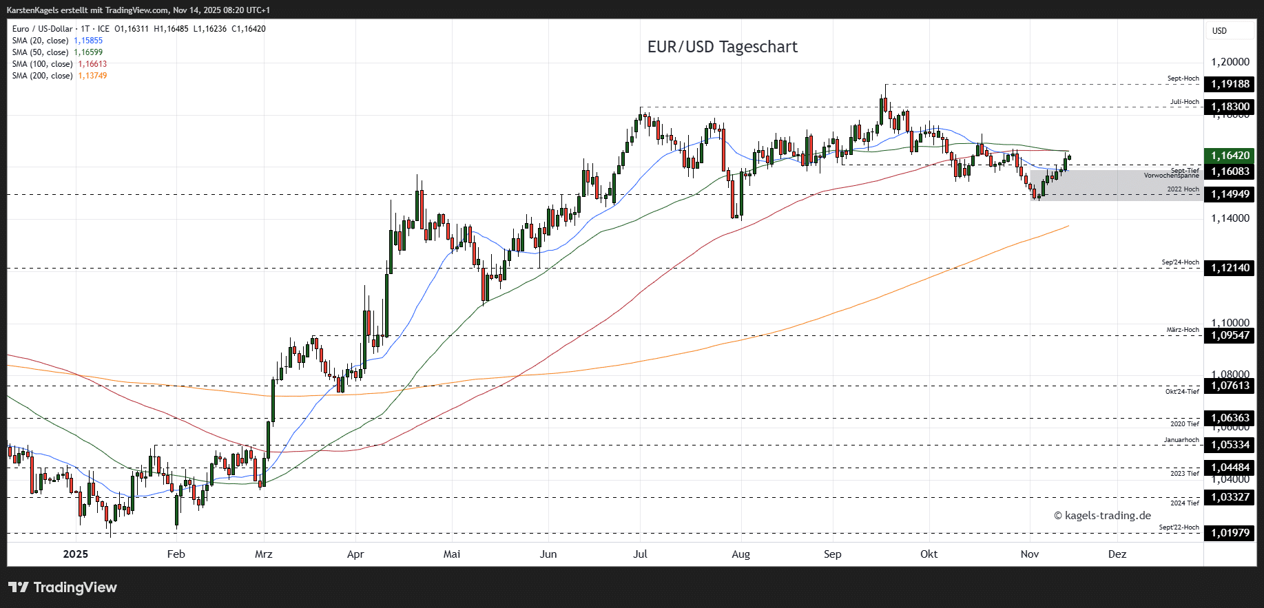 Update der EUR/USD-Prognose & Chartanalyse: 14.11.25 (08:21 Uhr) bei 1,1641