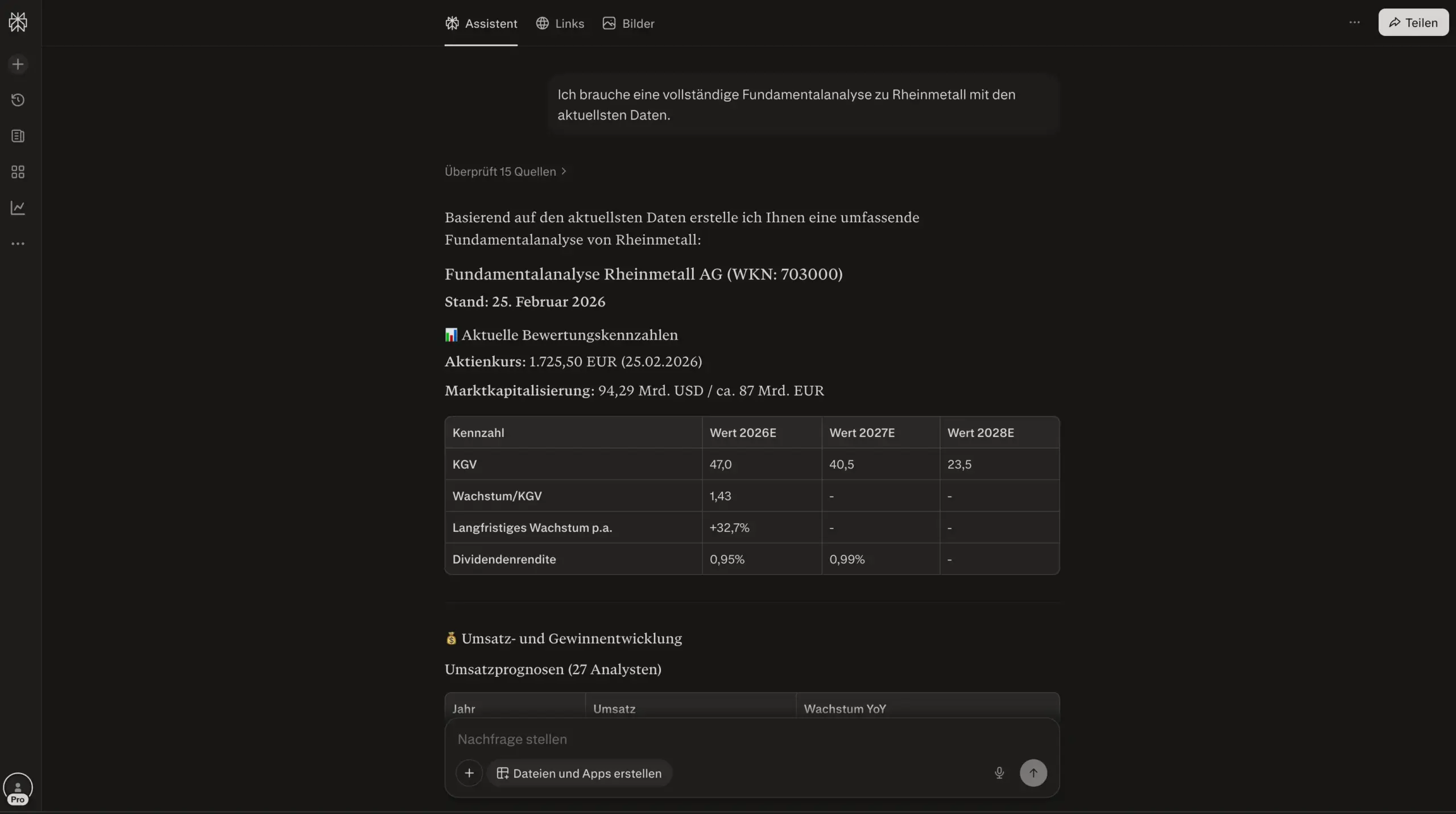 Jetzt fehlt die Praxis. Nimm eine Aktie, die du kennst, lade den Geschäftsbericht in Perplexity oder Claude und stelle konkrete Fragen dazu. Vergleiche die Kennzahlen mit Wettbewerbern aus derselben Branche und bilde dir eine eigene Meinung.