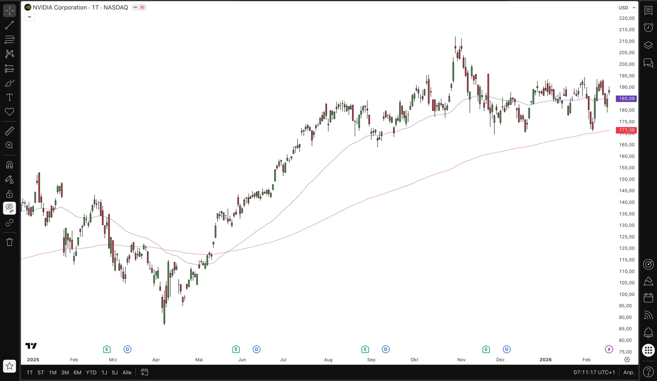 Die automatischen Trendlinien, für die es bekannt ist, sind regelbasierte Geometrie. Das Programm verbindet Hochs und Tiefs nach festen mathematischen Regeln, kein Machine Learning, sondern ein alter Algorithmus in moderner Oberfläche.