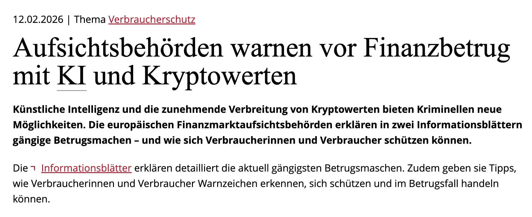 - Die BaFin warnt vor über 300 betrügerischen KI-Trading-Websites allein in Deutschland