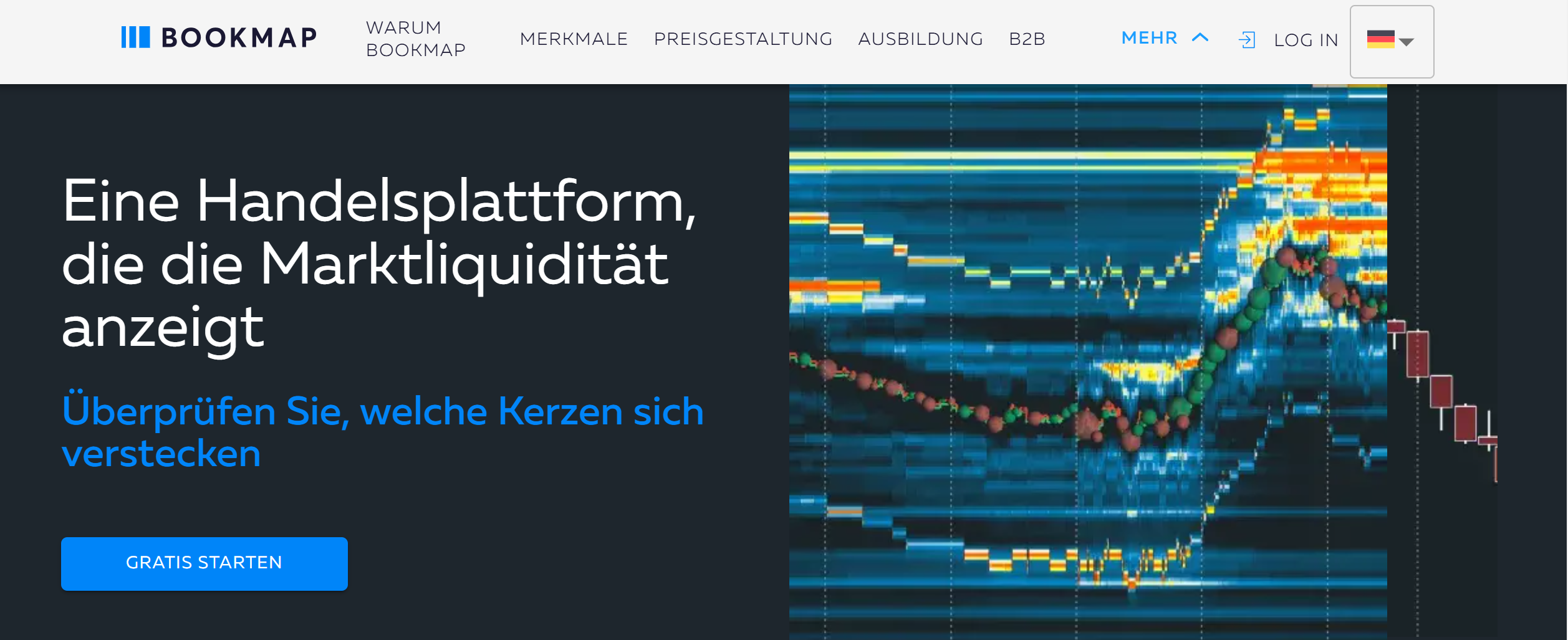 Bookmap ist besonders auf die Visualisierung von Orderflow-Daten spezialisiert. Die Plattform ermöglicht eine detaillierte Heatmap-Darstellung, die Liquidität im Markt in Echtzeit abbildet. Sie eignet sich vor allem für Trader, die sich auf Orderflow-Analysen und Scalping-Strategien konzentrieren. Mit der präzisen Abbildung von Marktbewegungen bietet Bookmap eine tiefe Einsicht in Kauf- und Verkaufsaktivitäten.