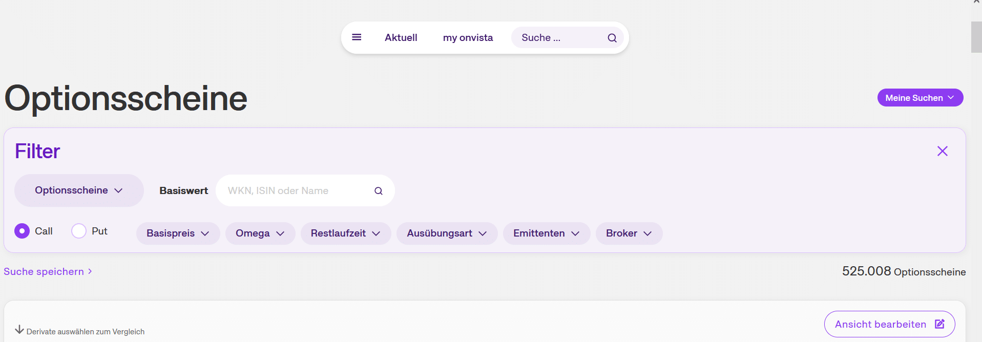 Sollte der zu berechnende Schein bisher nicht bekannt sein, empfiehlt sich die Nutzung des Derivate-Finders von Onvista.
