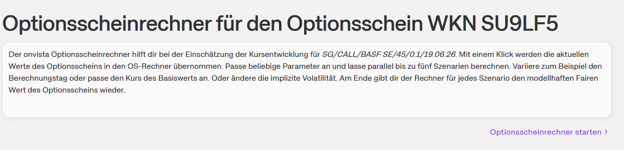 Leider konnte in der Onvista-App kein Optionsscheinrechner gefunden werden. Ebenso wurde in der Onvista-App keine Möglichkeit einer Verlinkung zum Onvista-Optionsscheinrechner gefunden.