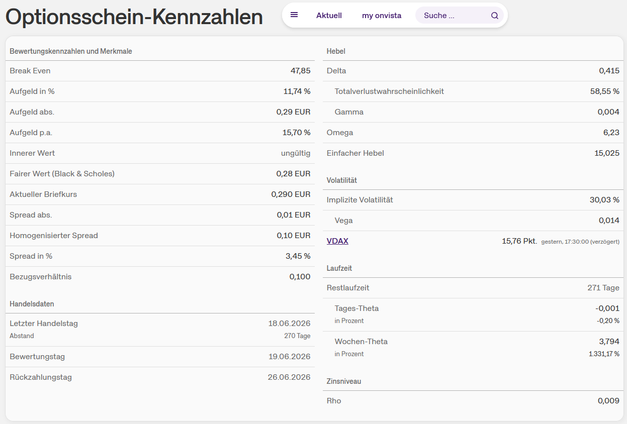 FAQ: Onvista Optionsscheinrechner
