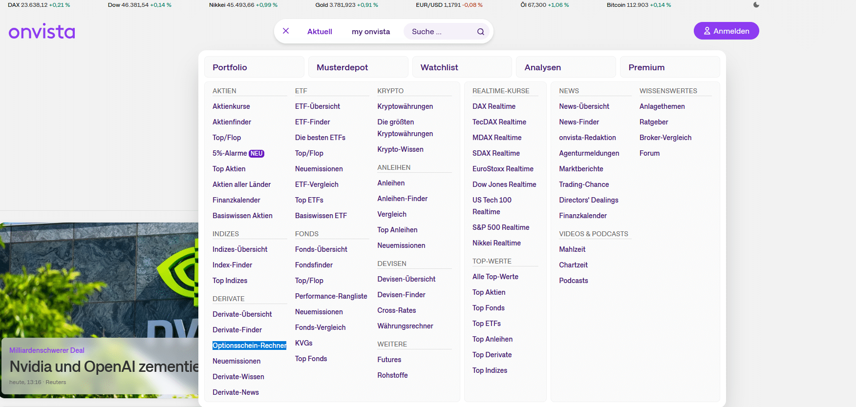 Wo finde ich den Onvista-Optionsscheinrechner?