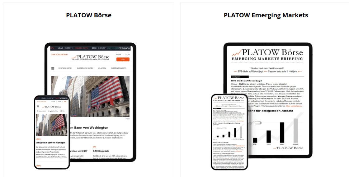 Ein weiteres Angebot des Finanzportals ist der Börsenbrief „PLATOW Emerging Markets“, der sich auf Aktien aus aufstrebenden Volkswirtschaften spezialisiert. Als Abonnent erhältst du regelmäßig Analysen und Einschätzungen zu Unternehmen aus Wachstumsmärkten, die häufig abseits der großen europäischen und US Börsen liegen.