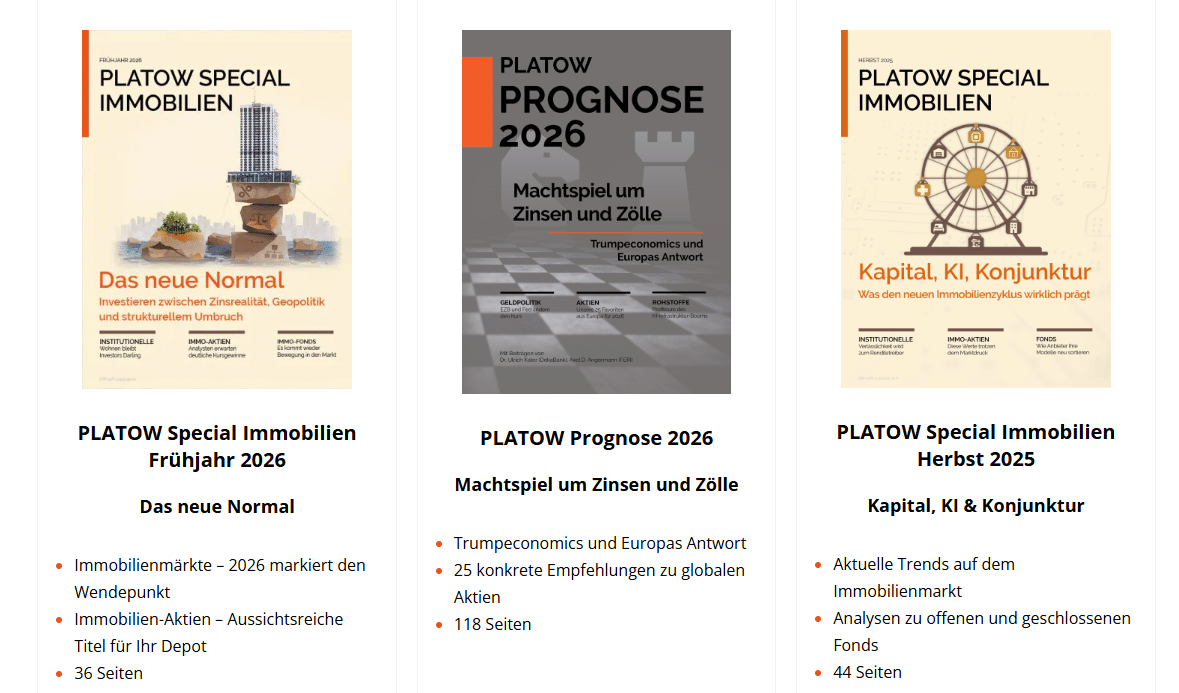 PLATOW Specials & Einzelausgaben zu Immobilien und makrowirtschaftlichen Themen