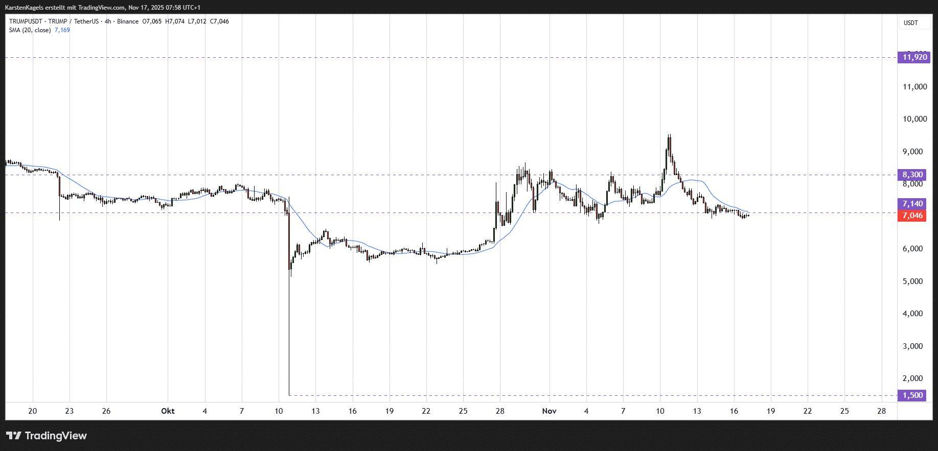 - Trump Prognose mittelfristig: Der Kursverlauf des neuen Coins bildet nach dem guten Start und scharfen Korrekturen noch keine Basis für eine neue Aufwärtstrendstruktur. Erst eine Erholung über $9 könnte sich an Kursziele im $12er-Bereich fortsetzen.