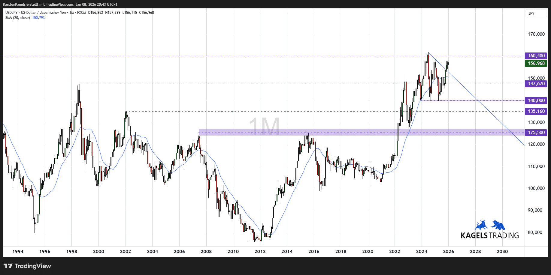 Eine hervorragende Übersicht über die technische Situation von Dollar/Yen findet sich hier auf TradingView.